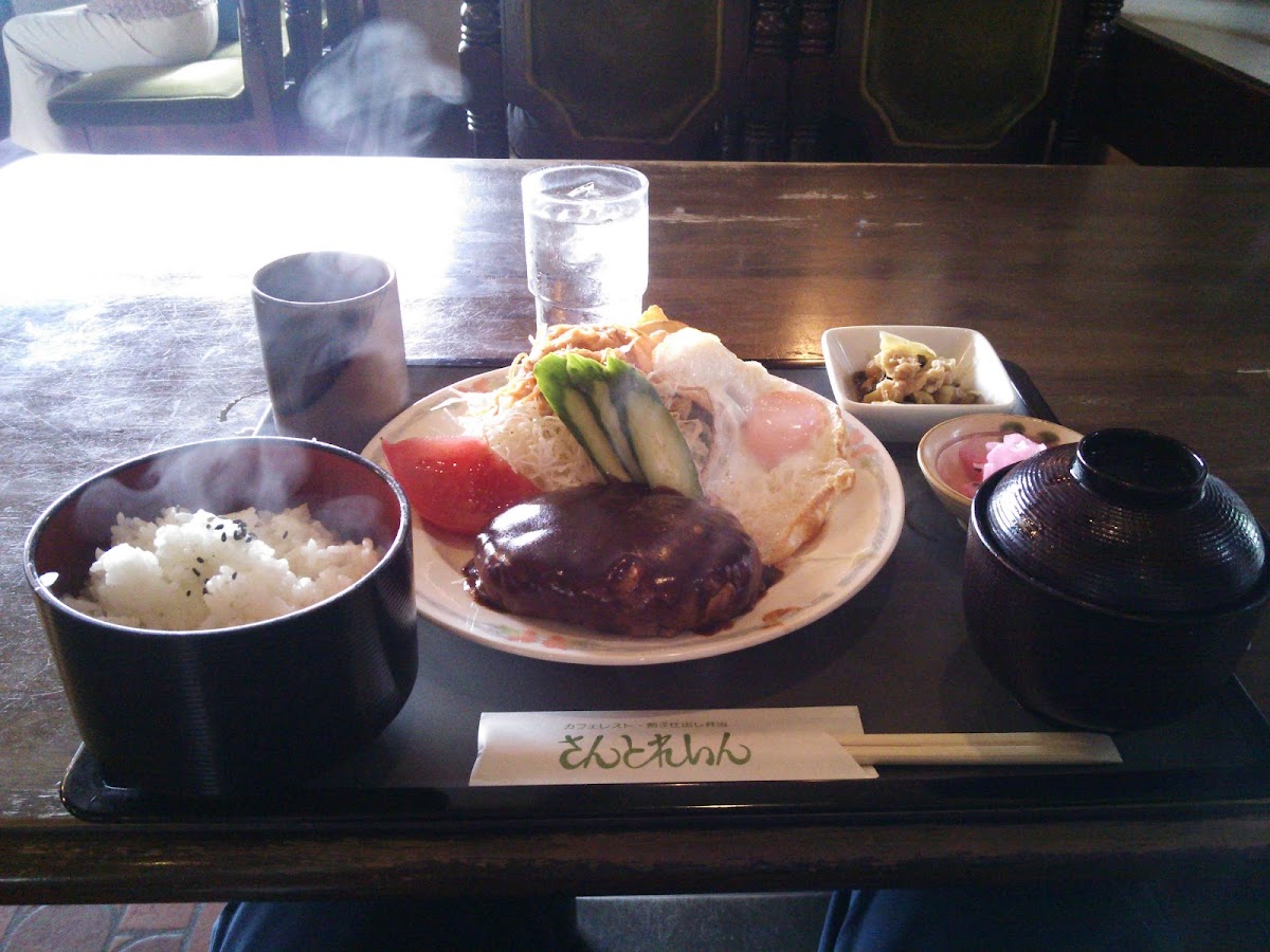 The café offers a wide array of meals that cater to all tastes, but what truly stands out are their weekday specials and hearty lunch sets—with a delightful daily selection perfect for those looking to try something new. One customer raved about their 日替わり定食 (daily special), which features delectable dishes like steamed salmon with a zesty ponzu sauce, crispy menchi-katsu, and a variety of sides that create a meal you won't soon forget.